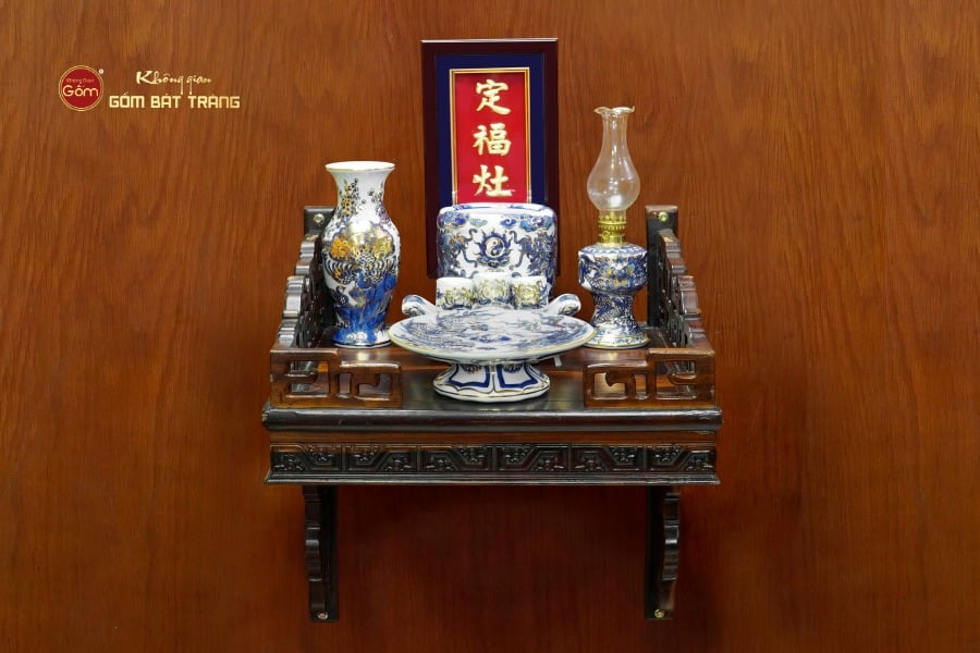 Bộ đồ thờ Ông Táo là bộ vật phẩm thờ cúng linh thiêng, tượng trưng cho sự tôn kính đối với vị thần cai quản bếp núc, người giữ ngọn lửa ấm và bảo hộ hạnh phúc trong mỗi gia đình Việt. Theo tín ngưỡng dân gian, thờ Ông Táo không chỉ là phong tục mà còn là cách gìn giữ hòa khí, cầu mong cuộc sống đủ đầy, an yên. Bộ đồ thờ thường bao gồm bát hương, chóe thờ, lọ hoa, mâm bồng, kỷ chén và đèn thờ, tất cả đều được chế tác tỉ mỉ từ gốm sứ Bát Tràng với các dòng men đặc trưng như men rạn, men lam hay men ngọc. Việc bày trí bộ đồ thờ Ông Táo vừa thể hiện lòng thành kính, vừa tôn thêm vẻ trang nghiêm và ấm cúng cho không gian thờ tự Việt.