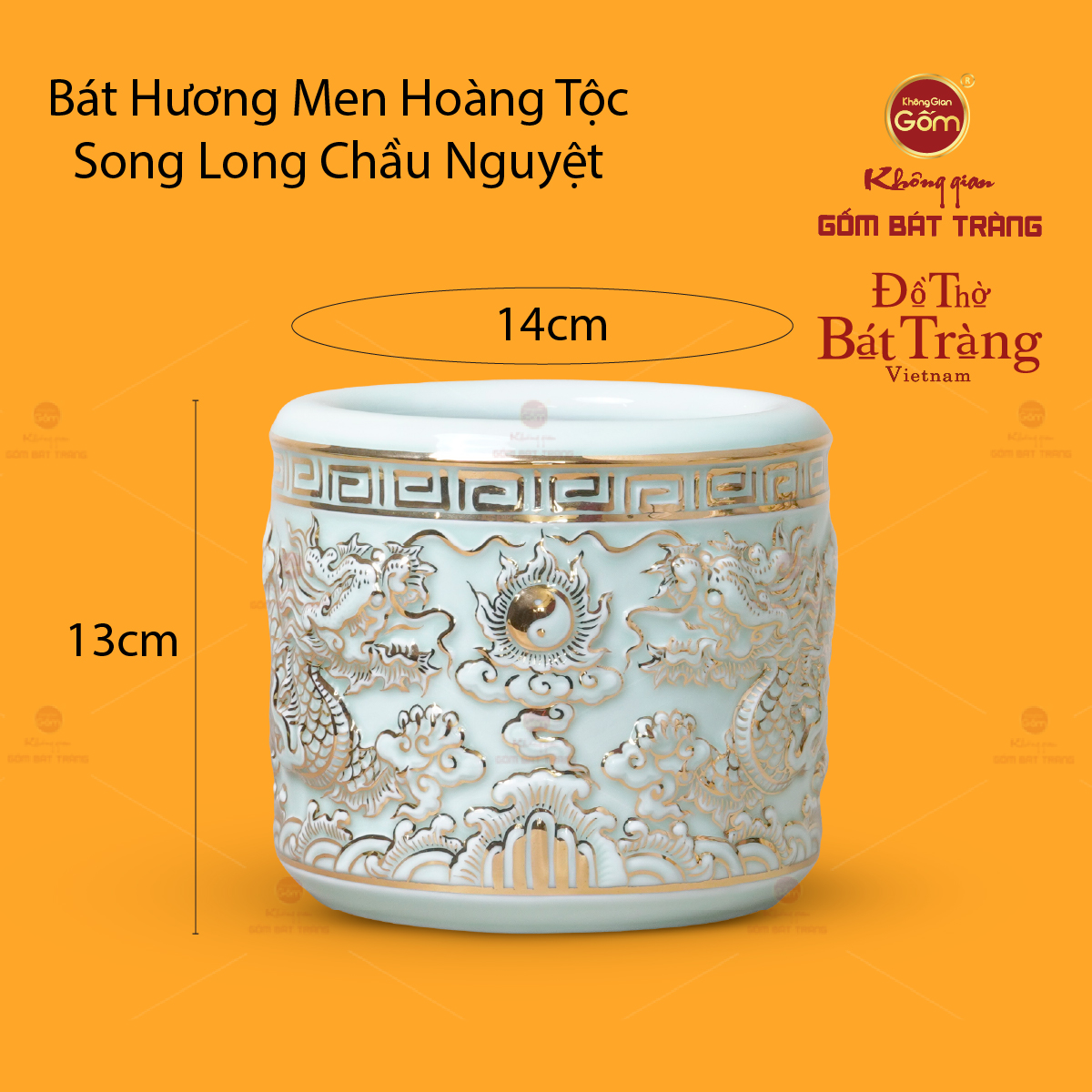 BÁT HƯƠNG MEN NGỌC HOÀNG TỘC SONG LONG CHẦU NGUYỆT VẼ VÀNG