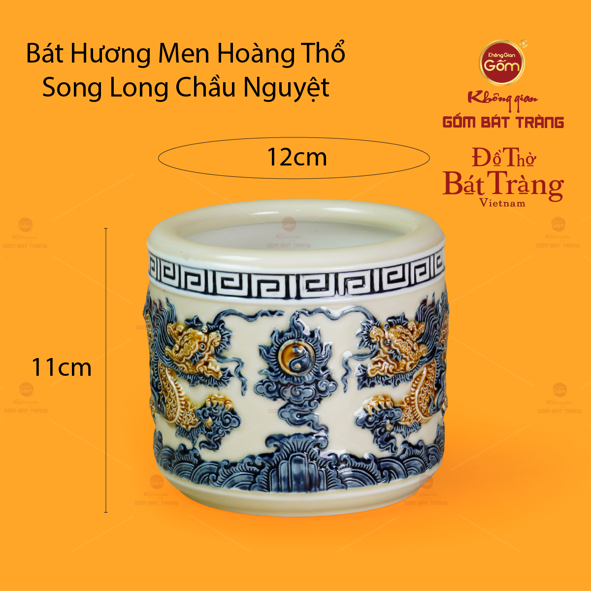Bát Hương Thờ Men Hoàng Thổ Họa Tiết Song Long Chầu Nguyệt