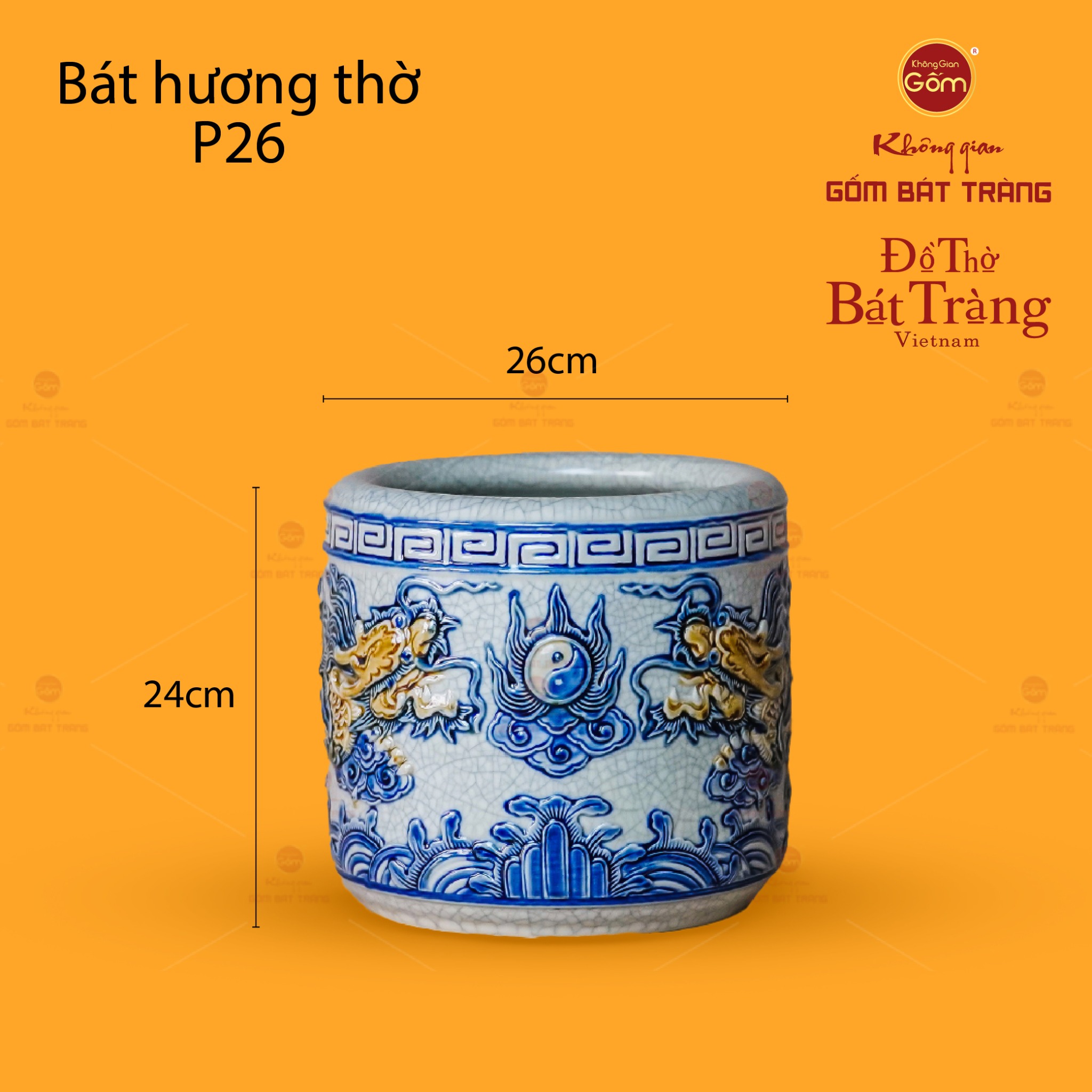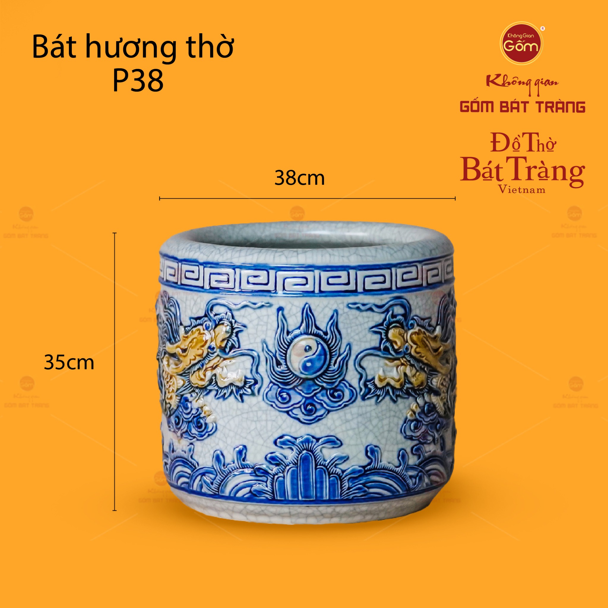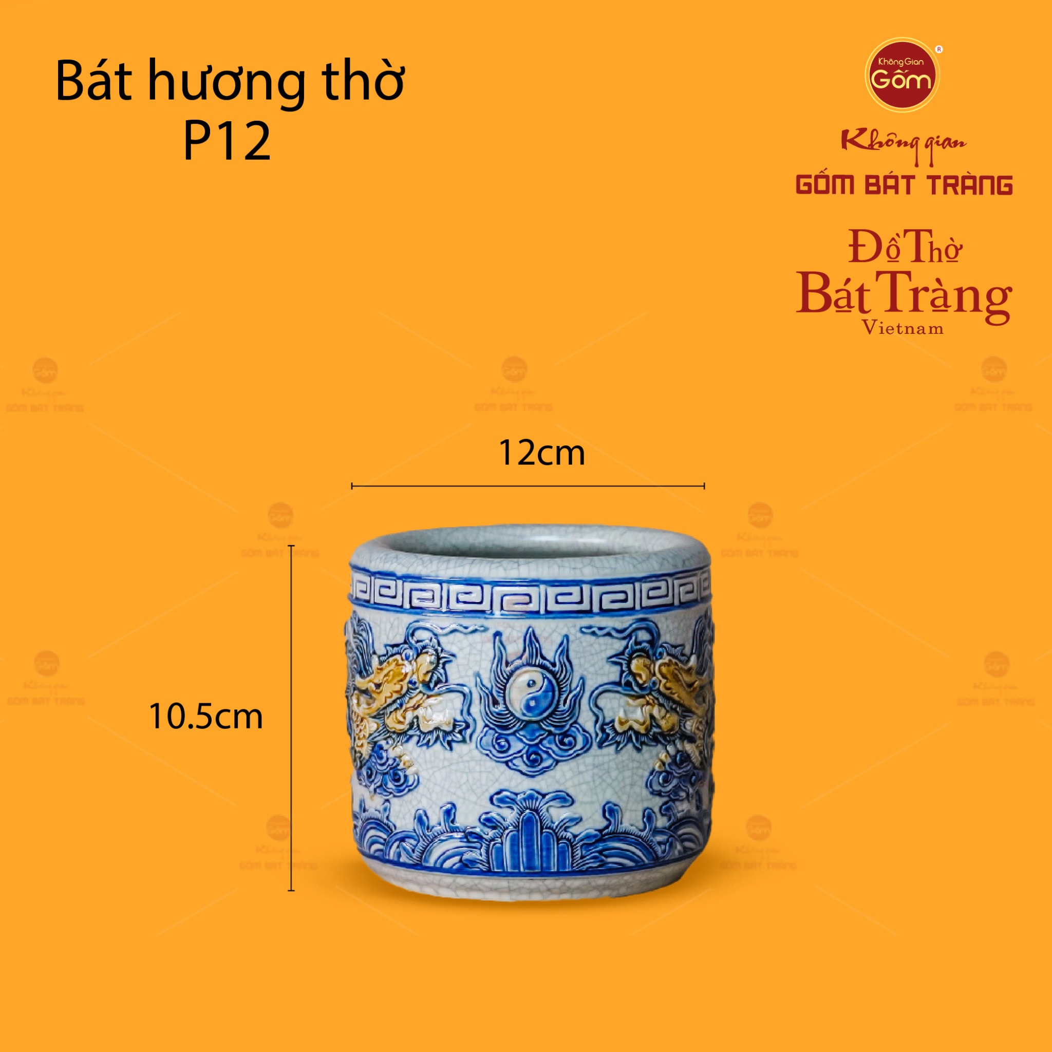 | Tên sản phẩm: | Bát Hương Thờ Men Rạn Họa Tiết Song Long Chầu Nguyệt |