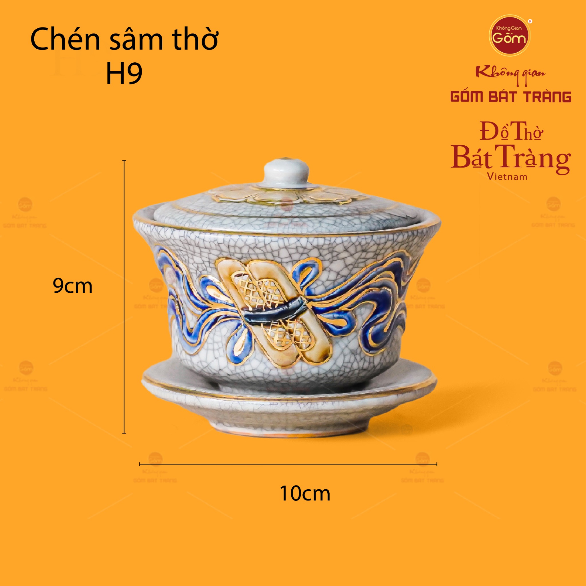 | Tên sản phẩm: | Bát Sâm Thờ Cuốn Thư Men Rạn Vẽ Vàng |