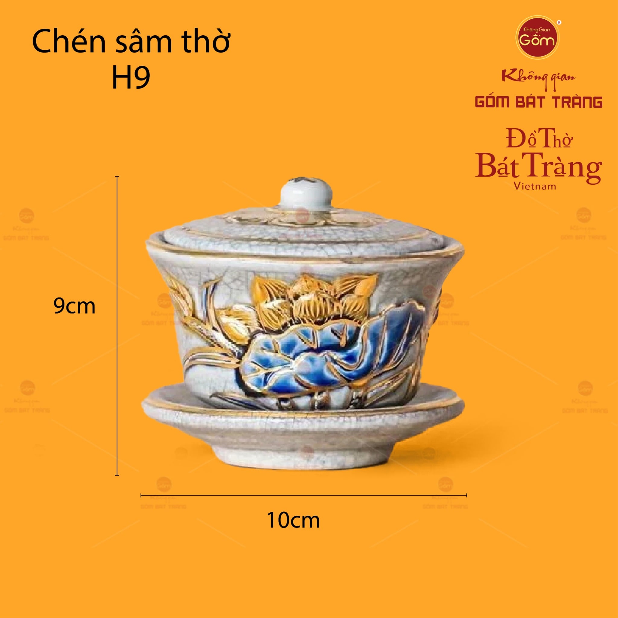 | Tên sản phẩm: | Bát Sâm Thờ Hoa Sen Men Rạn Vẽ Vàng |