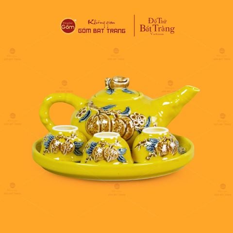 | Tên sản phẩm: | Bộ Ấm 3 Chén Thờ Men Vàng Họa Tiết Cành Đào |