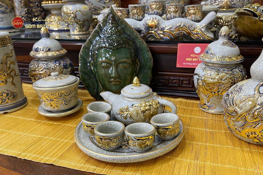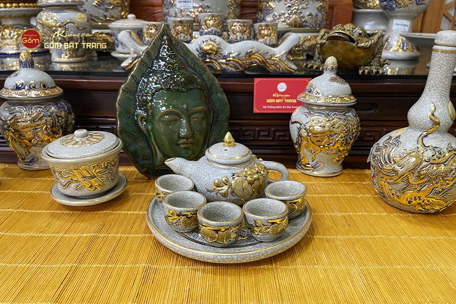 Đặc điểm của Bộ Ấm Chén Thờ Men Rạn Vẽ Vàng