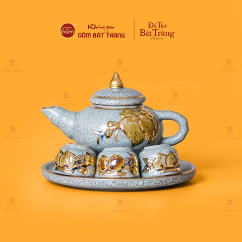 Bộ Ấm Chén Thờ Men Rạn Vẽ Vàng