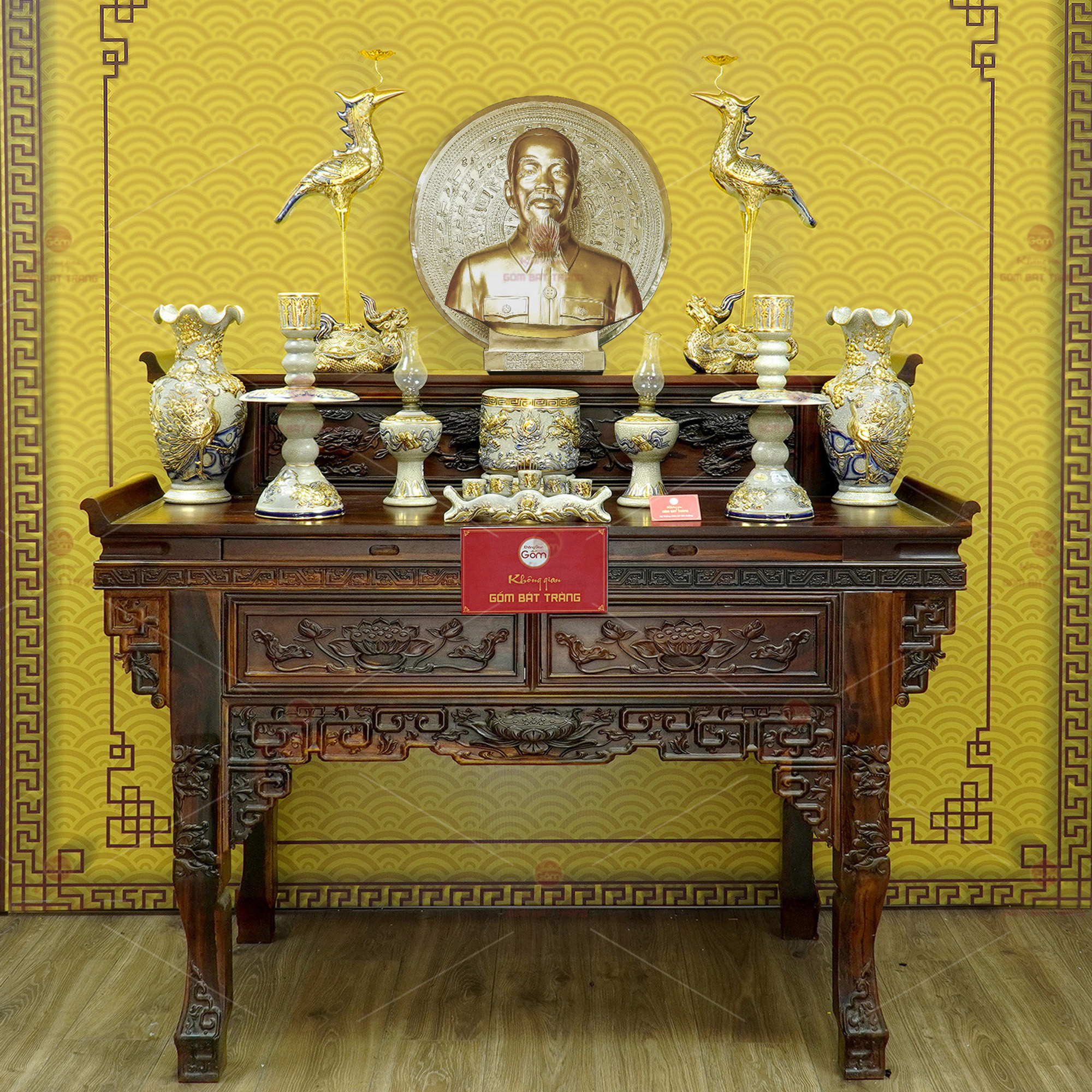Địa chỉ mua Bộ Đồ Thờ Bác Hồ Men Rạn Vẽ Vàng uy tín