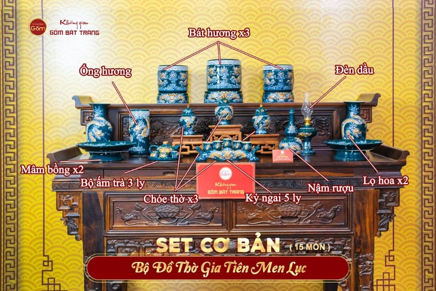 BỘ ĐỒ THỜ GIA TIÊN (CƠ BẢN 15 MÓN) MEN LỤC