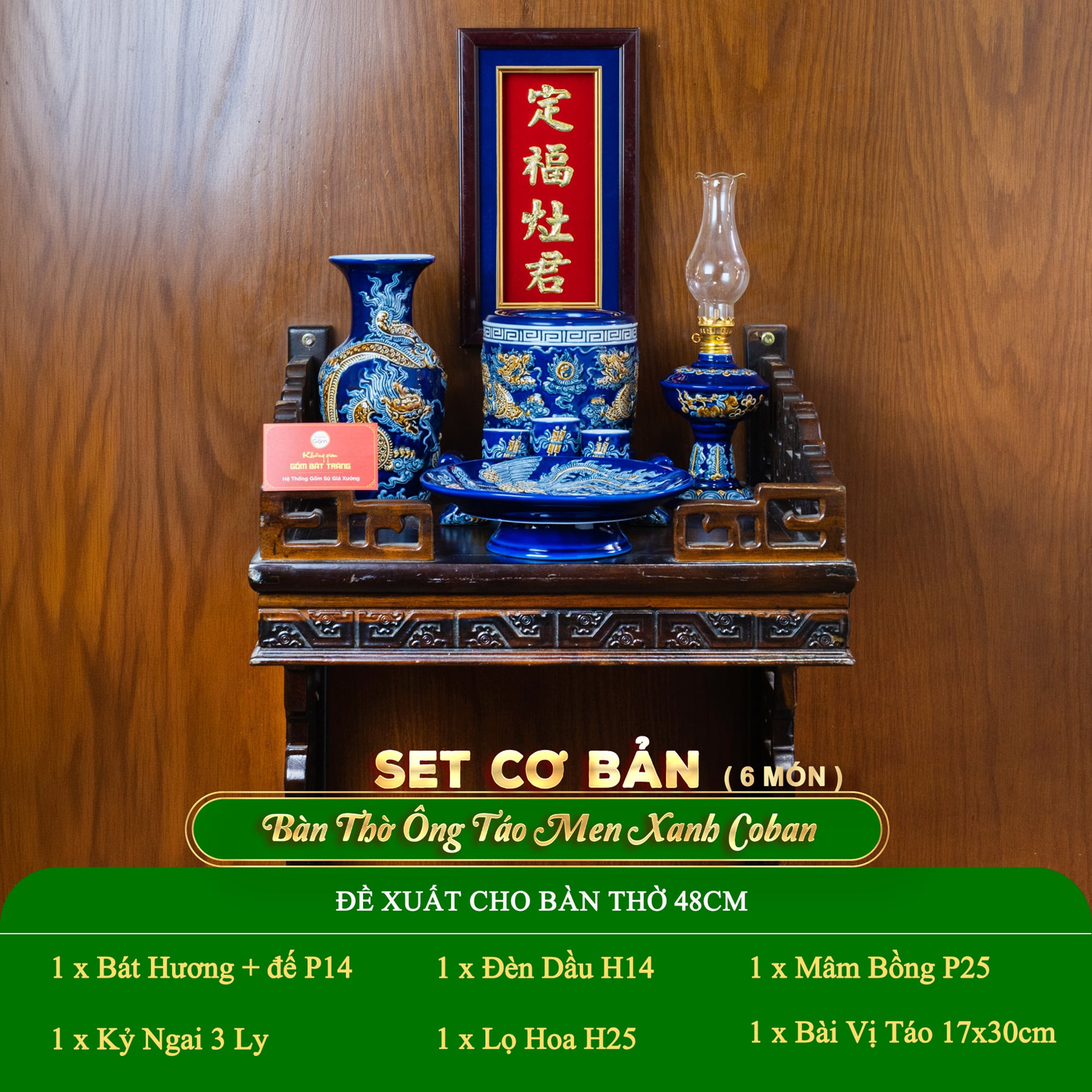BỘ ĐỒ THỜ ÔNG TÁO (CƠ BẢN 6 MÓN) MEN XANH COBAN