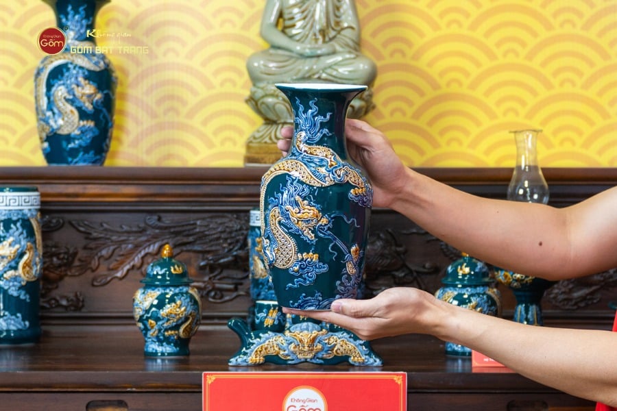 Sản phẩm được chế tác thủ công bởi nghệ nhân lành nghề, men lục đẹp mát mắt, họa tiết vẽ tay tỉ mỉ, kiểm duyệt kỹ lưỡng trước khi giao đến tay khách hàng. Đội ngũ tư vấn am hiểu phong thủy sẽ hỗ trợ bạn lựa chọn bộ đồ thờ phù hợp với không gian thờ cúng và mệnh của gia chủ.