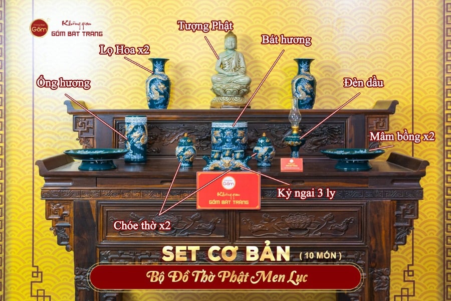 Địa chỉ mua Bộ Đồ Thờ Phật (Cơ Bản 10 Món) Men Lục uy tín