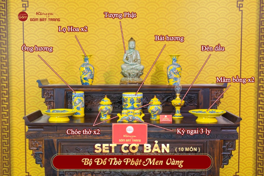 BỘ ĐỒ THỜ PHẬT (CƠ BẢN 10 MÓN) MEN VÀNG