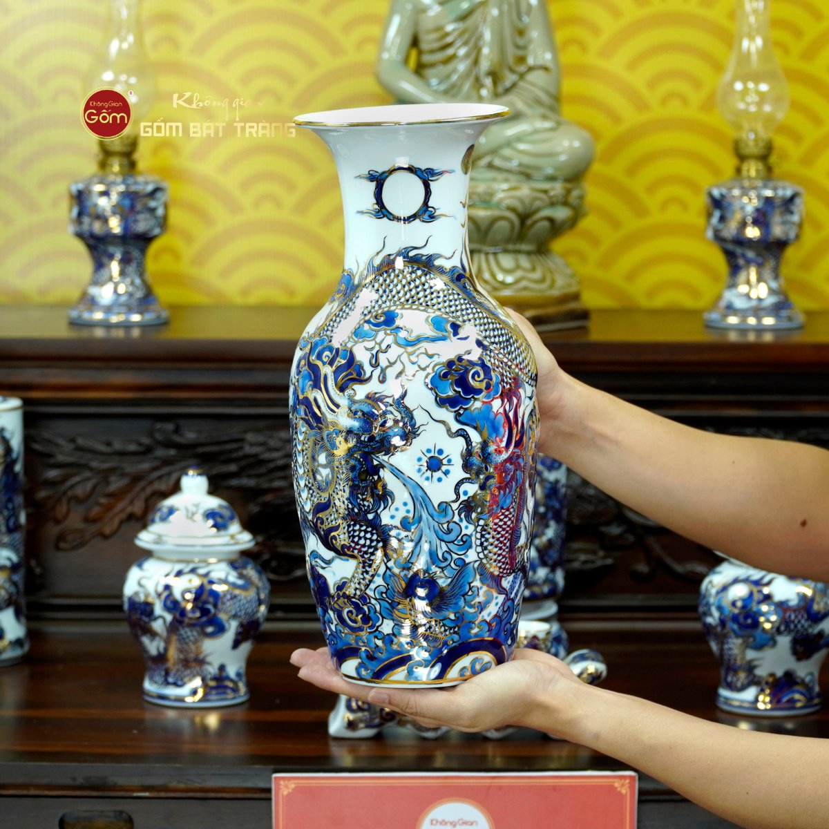 Để chọn mua bộ đồ thờ Phật chuẩn gốm sứ Bát Tràng, đảm bảo cả chất lượng – thẩm mỹ – phong thủy, Không Gian Gốm Bát Tràng là địa chỉ được đông đảo khách hàng tin tưởng. Là đơn vị chuyên sản xuất và cung cấp đồ thờ thủ công truyền thống, Không Gian Gốm cam kết 100% sản phẩm được chế tác tại làng nghề Bát Tràng, sử dụng vàng thật, men lam chuẩn, có chứng nhận nguồn gốc rõ ràng và chính sách bảo hành minh bạch.