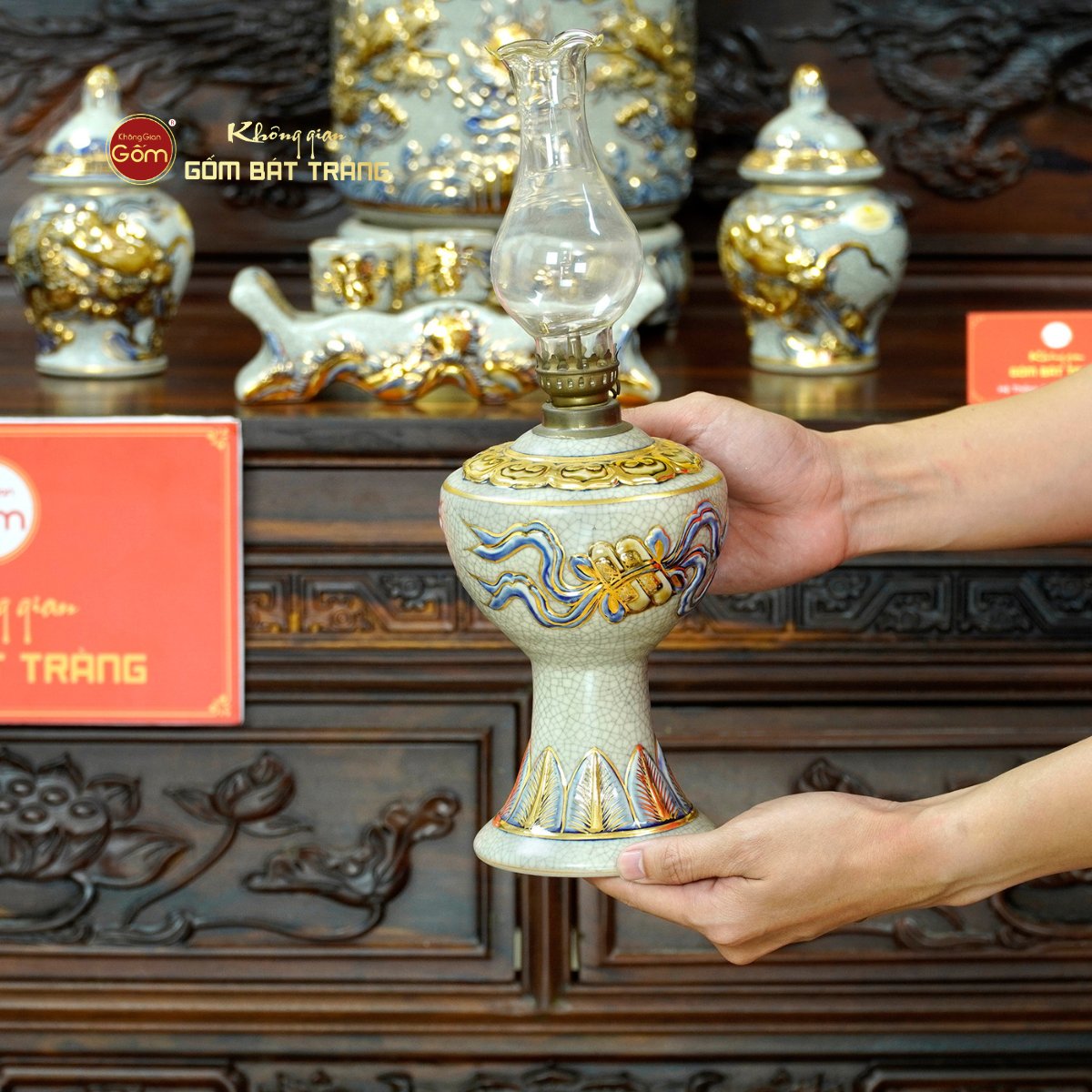 Khi đặt trên bàn thờ, bộ đồ thờ Phật men rạn vẽ vàng như một pháp khí giúp người thờ hướng tâm về thiện niệm, gieo duyên lành và nuôi dưỡng lòng từ bi. Dù số lượng gọn nhẹ hơn so với set cao cấp, nhưng từng chi tiết đều được nghệ nhân Bát Tràng chế tác thủ công tỉ mỉ, đảm bảo đủ đầy ý nghĩa phong thủy và nghi lễ thờ tự.