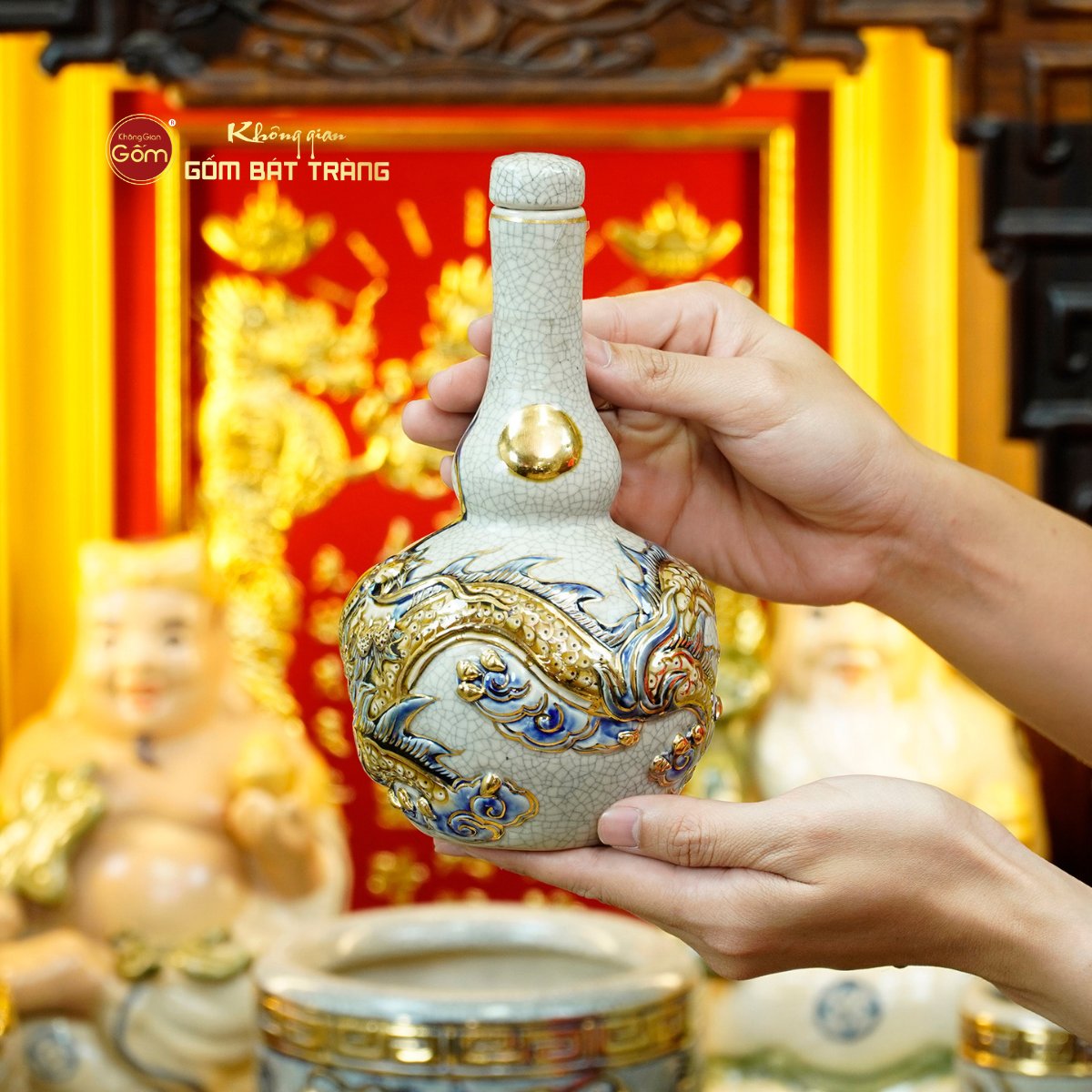 Đặc biệt với dòng men rạn vẽ vàng, đồ thờ sẽ vừa có đô dày, đanh chắc và cứng cáp; vừa có tính thẩm mỹ cao do được phủ bởi nước men rạn và vẽ viền vàng óng ánh. Men gốm bền màu và sáng bóng, giúp giữ cho họa tiết trang trí luôn nguyên vẹn qua thời gian.