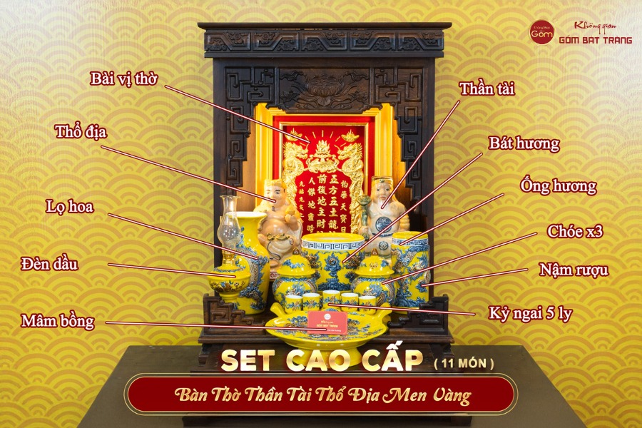 Ý nghĩa Bộ Đồ Thờ Thần Tài Thổ Địa (Cao cấp 11 Món) Men Vàng