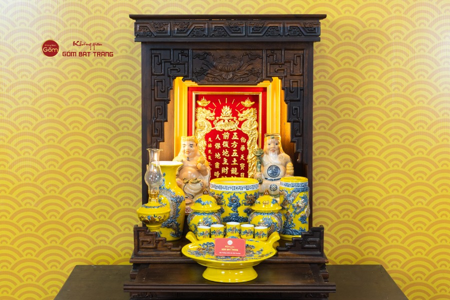 Ngoài giá trị thẩm mỹ, bộ sản phẩm còn thuận tiện trong việc vệ sinh và bảo quản. Bề mặt men mịn giúp việc lau chùi dễ dàng, giữ cho ban thờ luôn sạch sẽ và tôn nghiêm. Nhờ đó, gia chủ có thể duy trì không gian thờ chỉn chu trong thời gian dài mà không tốn nhiều công chăm sóc.