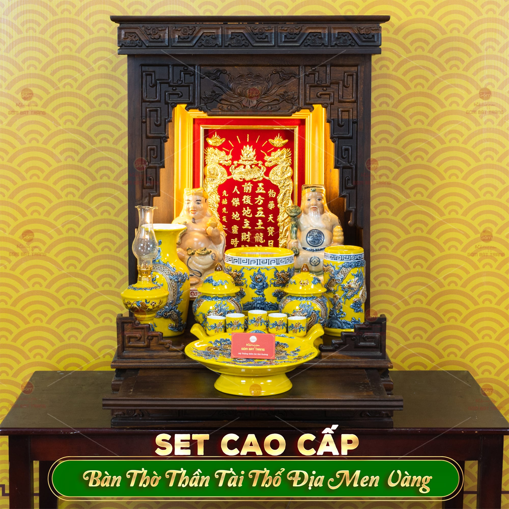 | Tên sản phẩm: | Bộ Đồ Thờ Thần Tài Thổ Địa (Cao Cấp 11 Món) Men Vàng |