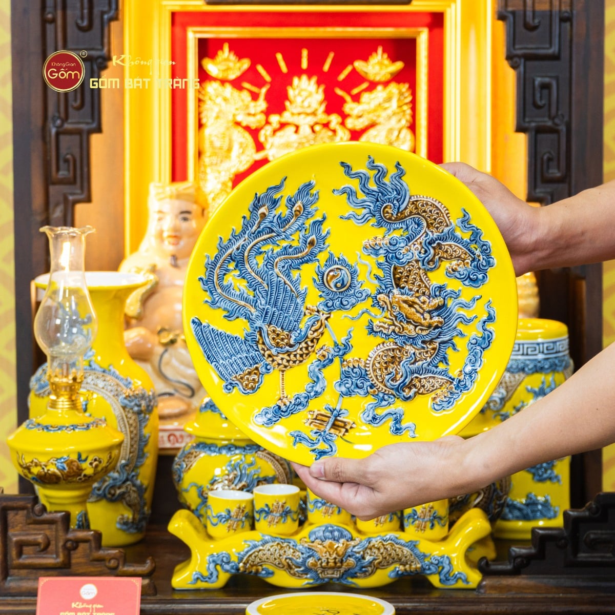 Để lựa chọn Bộ Đồ Thờ Thần Tài Thổ Địa (Cao cấp 11 Món) Men Vàng đảm bảo chất lượng và tính thẩm mỹ, gia chủ nên tìm đến những đơn vị chuyên sâu về gốm sứ tâm linh. Không Gian Gốm Bát Tràng là địa chỉ cung cấp các dòng đồ thờ được chế tác từ gốm Bát Tràng với quy trình sản xuất rõ ràng, chú trọng từng chi tiết hoa văn và sắc men.