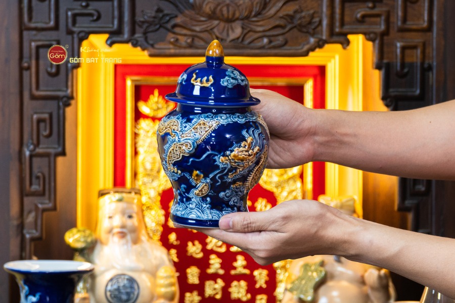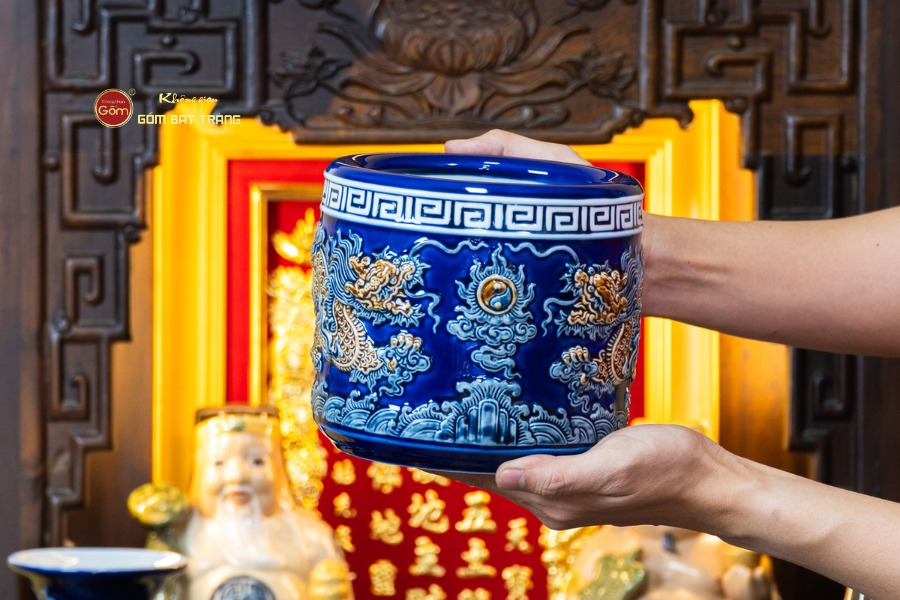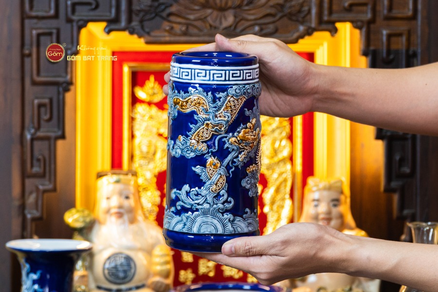 Bộ Đồ Thờ Thần Tài Thổ Địa (Cao Cấp 11 Món) Men Xanh Coban được chế tác từ gốm sứ cao cấp, nung ở nhiệt độ cao giúp cốt gốm chắc tay, bền bỉ và hạn chế tối đa tình trạng rạn nứt trong quá trình sử dụng lâu dài. Lớp men xanh coban được phủ đều, xử lý kỹ lưỡng tạo độ bóng sâu và sắc xanh ổn định theo thời gian. Khi kết hợp với ánh đèn thờ vàng ấm, sắc xanh càng nổi bật chiều sâu và sự linh thiêng của không gian thờ tự.