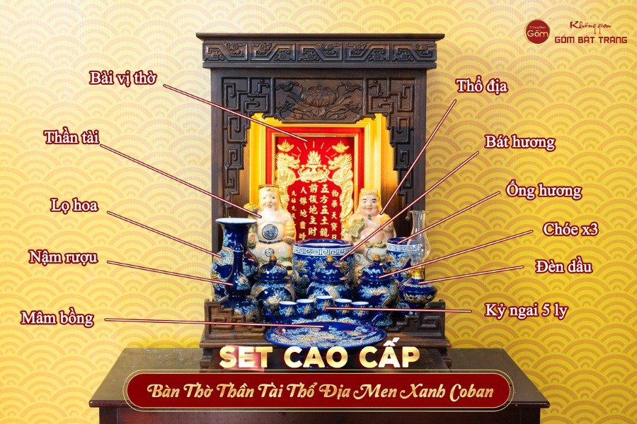 Ý nghĩa Bộ Đồ Thờ Thần Tài Thổ Địa (Cao Cấp 11 Món) Men Xanh Coban
