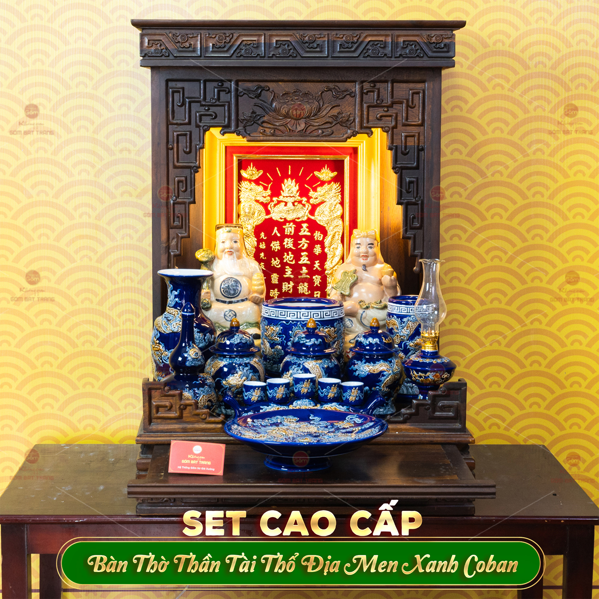 Địa chỉ mua Bộ Đồ Thờ Thần Tài Thổ Địa (Cao Cấp 11 Món) Men Xanh Coban