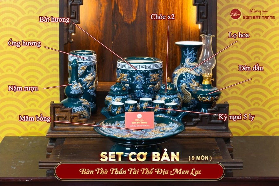 BỘ ĐỒ THỜ THẦN TÀI THỔ ĐỊA (CƠ BẢN 9 MÓN) MEN LỤC