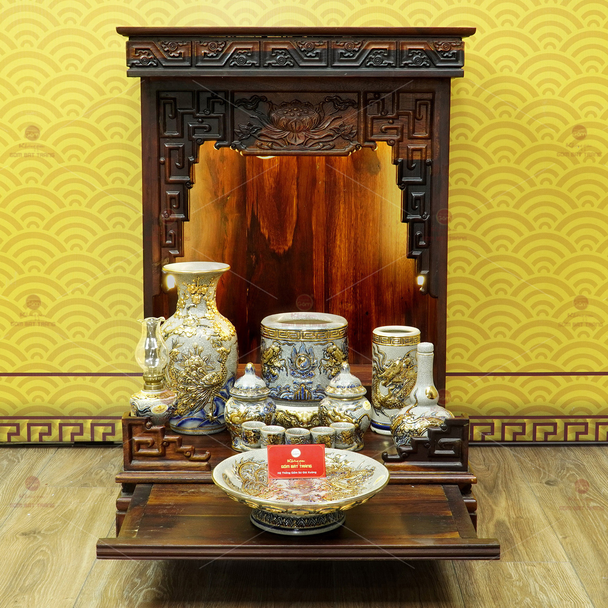 Bộ sản phẩm không kèm bàn thờ gỗ. Quý khách có thể tham khảo thêm các sản phẩm bàn thờ gỗ phù hợp hoặc liên hệ để được tư vấn thêm.