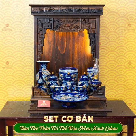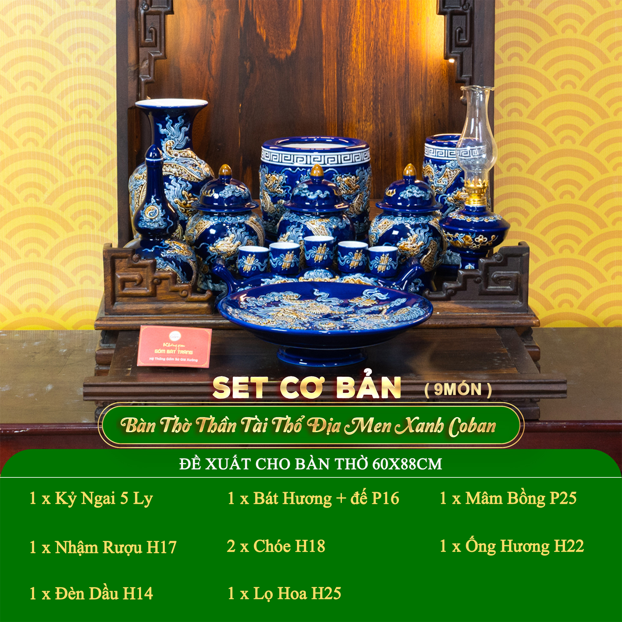 BỘ ĐỒ THỜ THẦN TÀI THỔ ĐỊA (CƠ BẢN 9 MÓN) MEN XANH COBAN