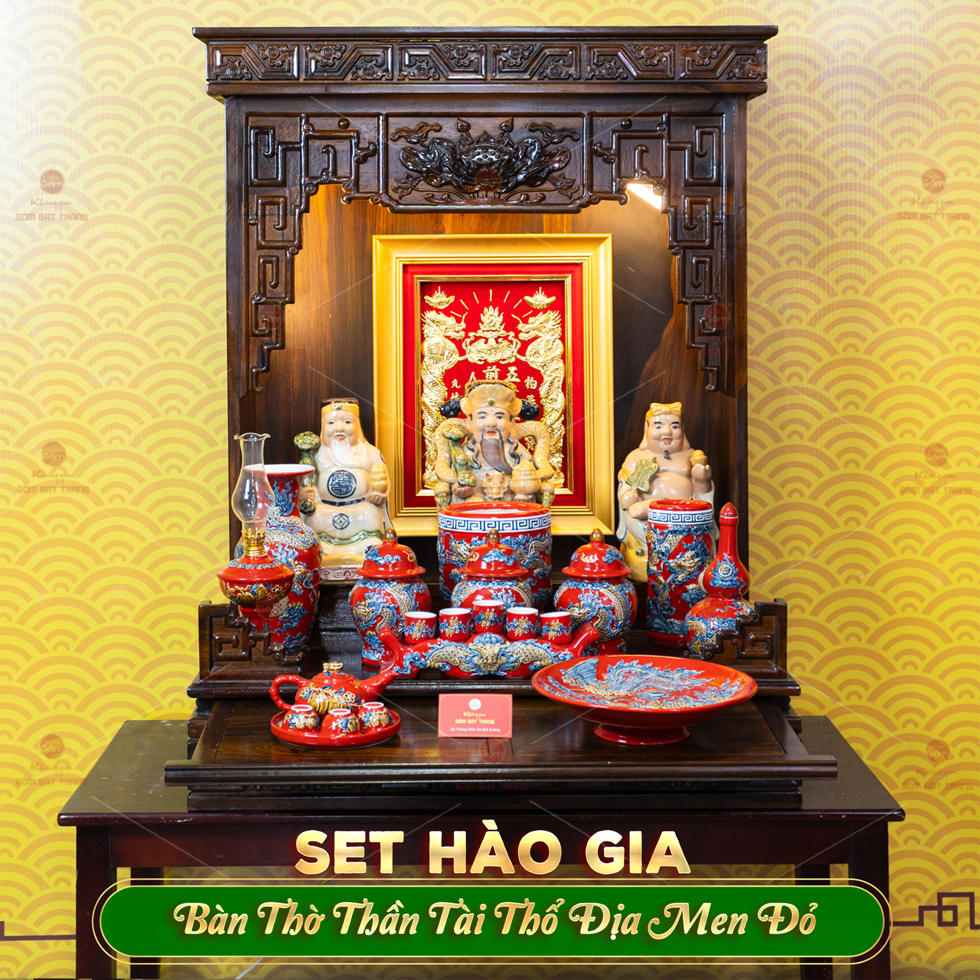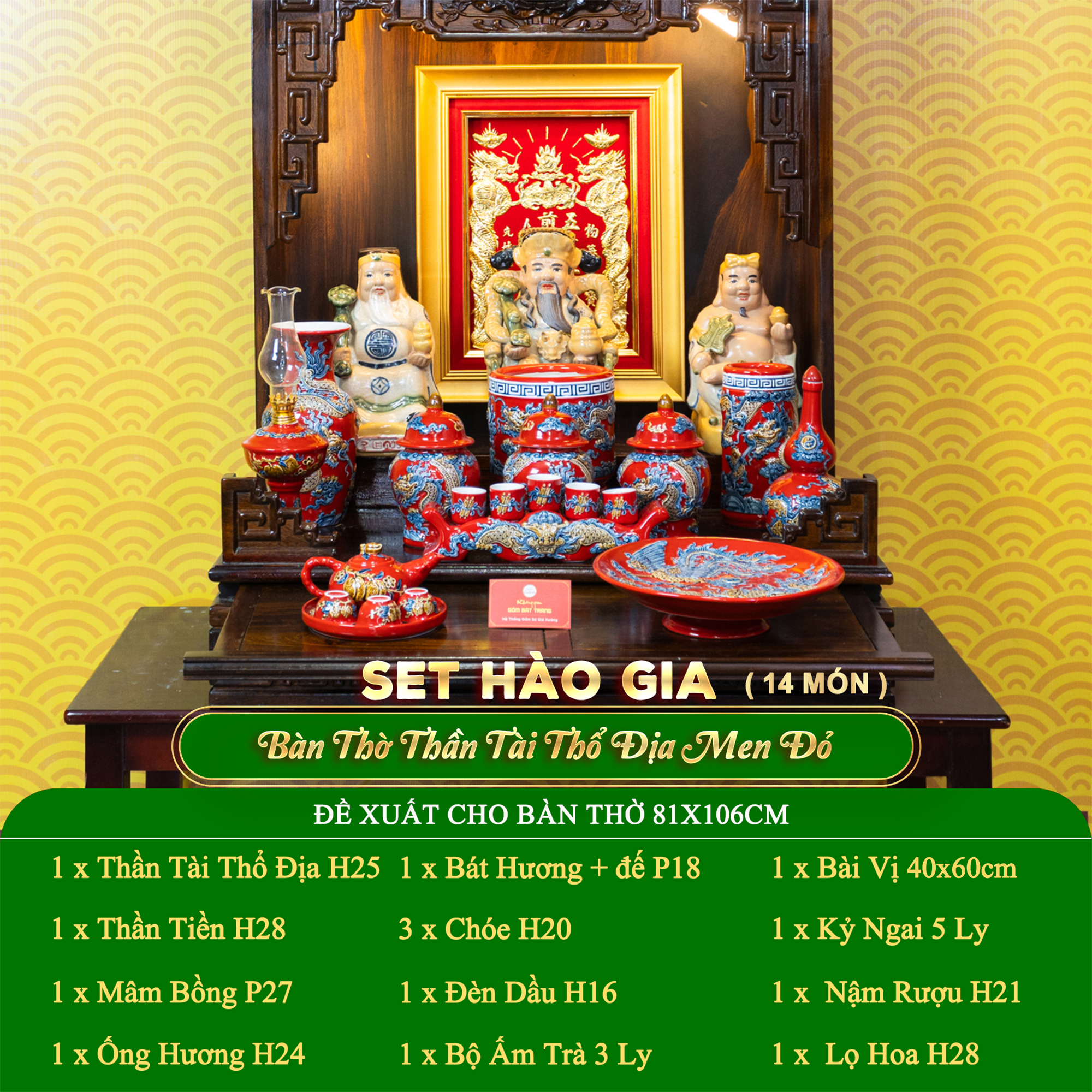 BỘ ĐỒ THỜ THẦN TÀI THỔ ĐỊA (HÀO GIA 14 MÓN) MEN ĐỎ