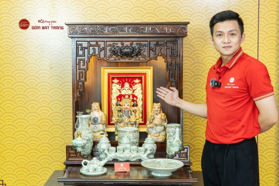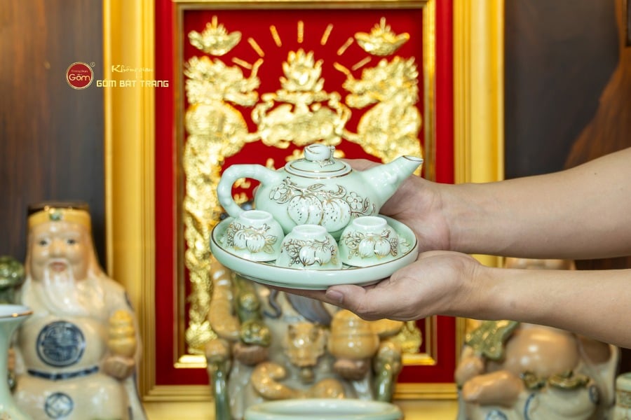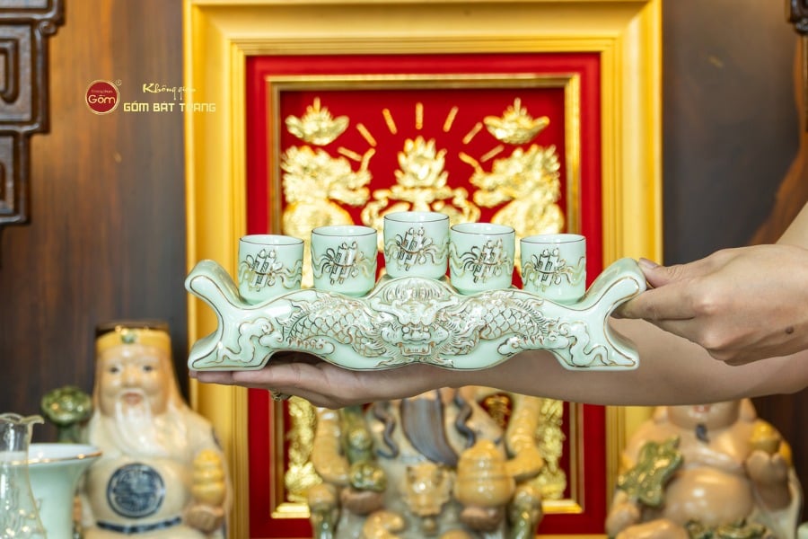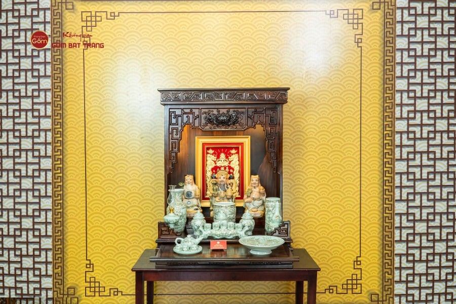 Sắc men hoàng tộc tạo nên vẻ đẹp trầm mặc, uy nghi và thanh thoát. Trên nền men xanh mát, các họa tiết thường được các nghệ nhân Bát Tràng thực hiện thủ công. Các món đồ trong bộ được thiết kế với kích thước vừa vặn, rất phù hợp với các mẫu bàn thờ Thần Tài tại các cửa hàng nhỏ, văn phòng hoặc căn hộ chung cư. Tỷ lệ giữa các vật phẩm được tính toán cân đối, giúp gia chủ bài trí dễ dàng mà vẫn đảm bảo tính thẩm mỹ cao.
