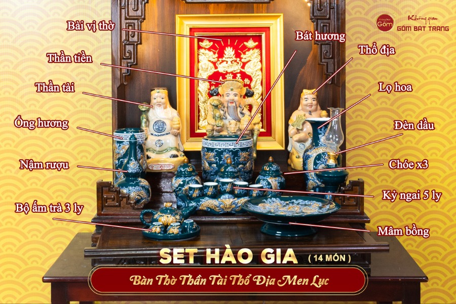 Ý nghĩa Bộ Đồ Thờ Thần Tài Thổ Địa (Hào Gia 14 Món) Men Lục