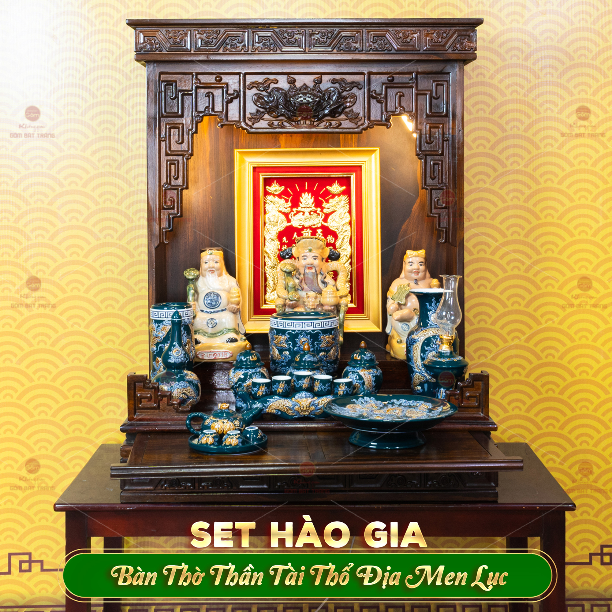 BỘ ĐỒ THỜ THẦN TÀI THỔ ĐỊA (HÀO GIA 14 MÓN) MEN LỤC