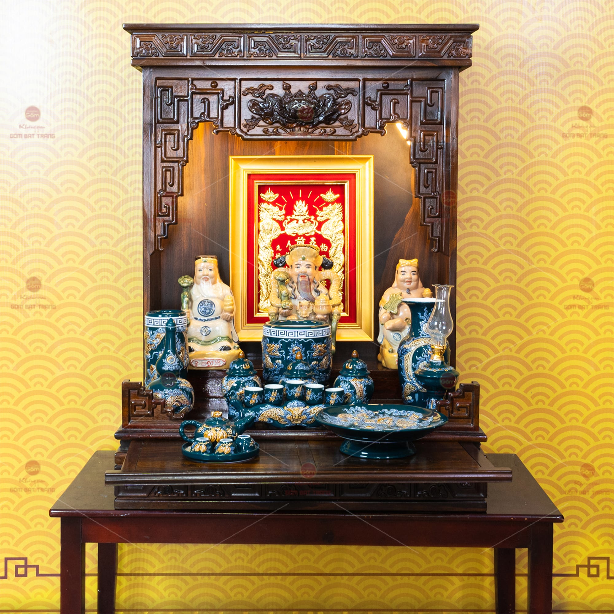 Địa chỉ mua Bộ Đồ Thờ Thần Tài Thổ Địa (Hào Gia 14 Món) Men Lục