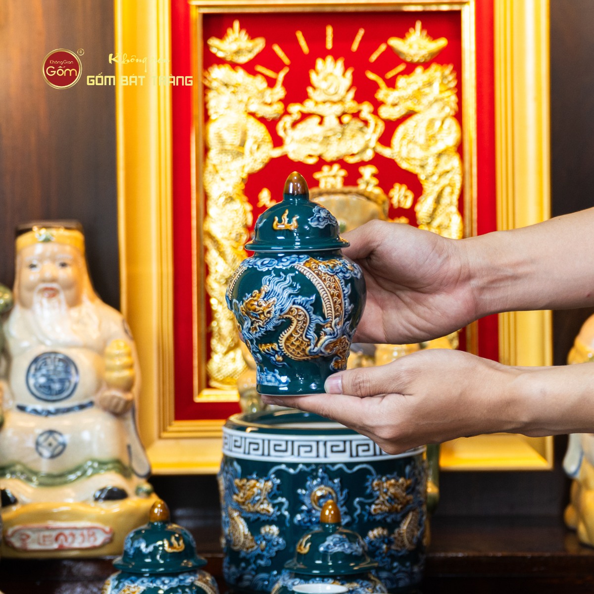 Để lựa chọn Bộ Đồ Thờ Thần Tài Thổ Địa (Hào Gia 14 Món) Men Lục đảm bảo chất lượng và tính thẩm mỹ, gia chủ nên tìm đến những đơn vị chuyên sâu về gốm sứ tâm linh. Không Gian Gốm Bát Tràng là địa chỉ cung cấp các dòng đồ thờ được chế tác từ gốm Bát Tràng với quy trình sản xuất rõ ràng, chú trọng từng chi tiết hoa văn và sắc men.