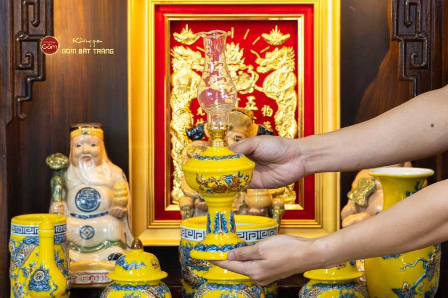 Ngoài giá trị thẩm mỹ, bộ sản phẩm còn thuận tiện trong việc vệ sinh và bảo quản. Bề mặt men mịn giúp việc lau chùi dễ dàng, giữ cho ban thờ luôn sạch sẽ và tôn nghiêm. Nhờ đó, gia chủ có thể duy trì không gian thờ chỉn chu trong thời gian dài mà không tốn nhiều công chăm sóc.