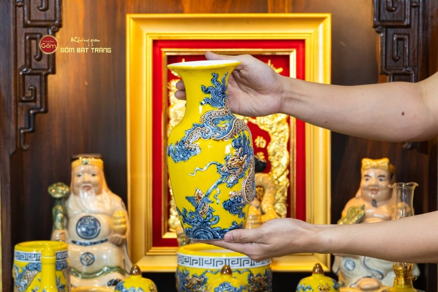 Để lựa chọn Bộ Đồ Thờ Thần Tài Thổ Địa (Hào gia 14 Món) Men Vàng đảm bảo chất lượng và tính thẩm mỹ, gia chủ nên tìm đến những đơn vị chuyên sâu về gốm sứ tâm linh. Không Gian Gốm Bát Tràng là địa chỉ cung cấp các dòng đồ thờ được chế tác từ gốm Bát Tràng với quy trình sản xuất rõ ràng, chú trọng từng chi tiết hoa văn và sắc men.