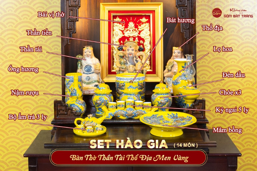 Ý nghĩa Bộ Đồ Thờ Thần Tài Thổ Địa (Hào Gia 14 Món) Men Vàng