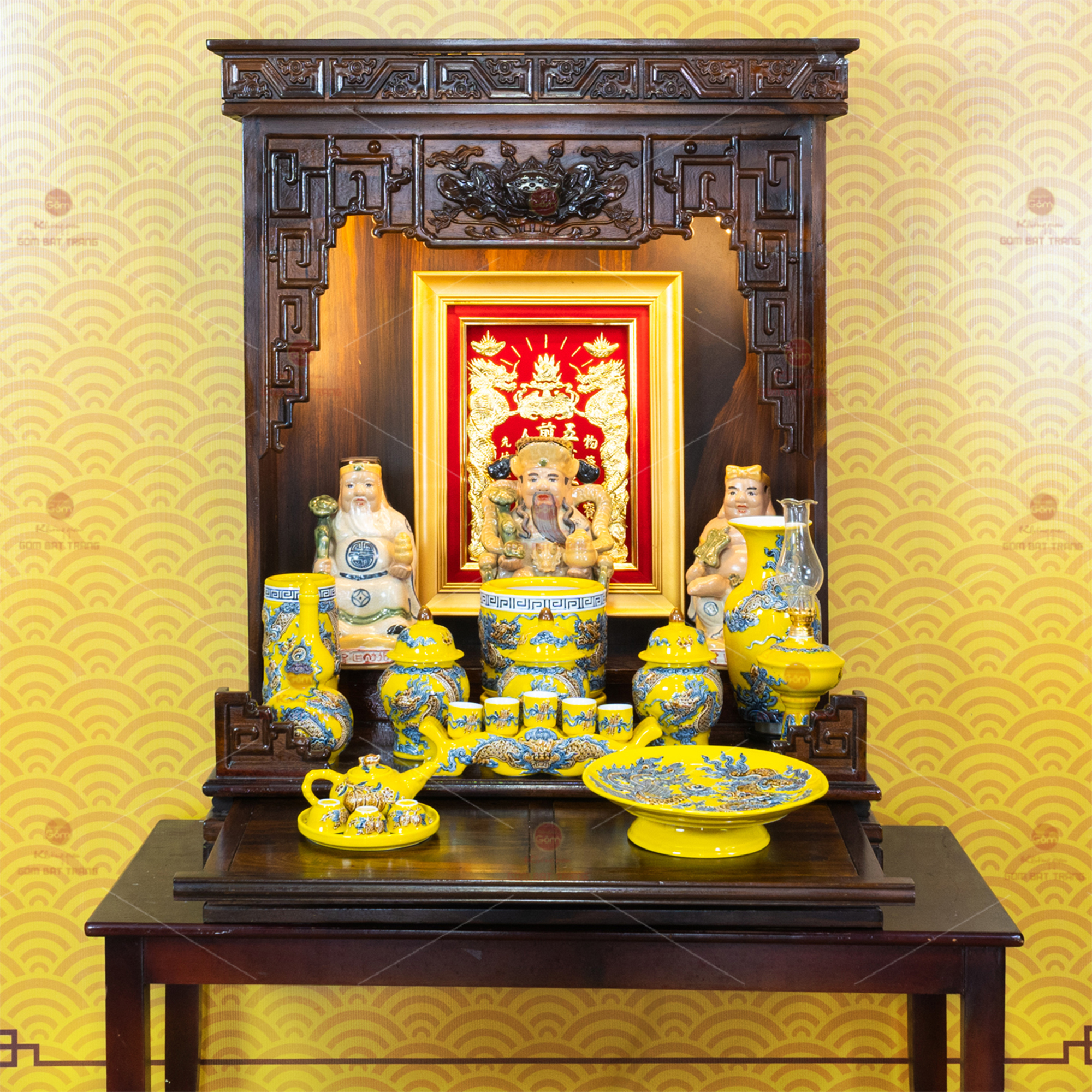 Địa chỉ mua Bộ Đồ Thờ Thần Tài Thổ Địa (Hào gia 14 Món) Men Vàng