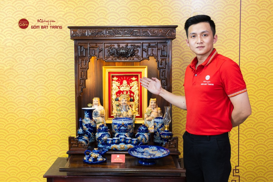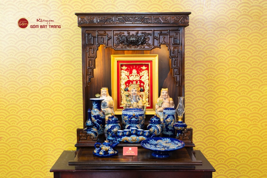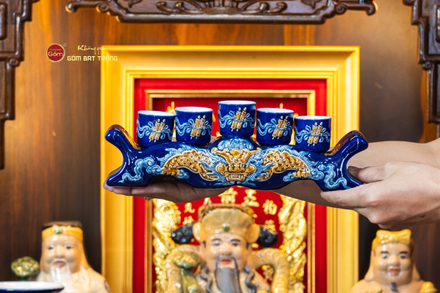 Sự phong phú về số lượng vật phẩm giúp gia chủ dễ dàng chuẩn bị lễ nghi đầy đủ trong các dịp mùng một, ngày rằm hay ngày vía Thần Tài. Đồng thời, bố cục cân đối giữa các vật phẩm mang lại cảm giác vững chãi và bề thế cho không gian thờ. Bề mặt men mịn, dễ lau chùi giúp ban thờ luôn sạch sẽ và giữ được vẻ trang nghiêm theo thời gian.