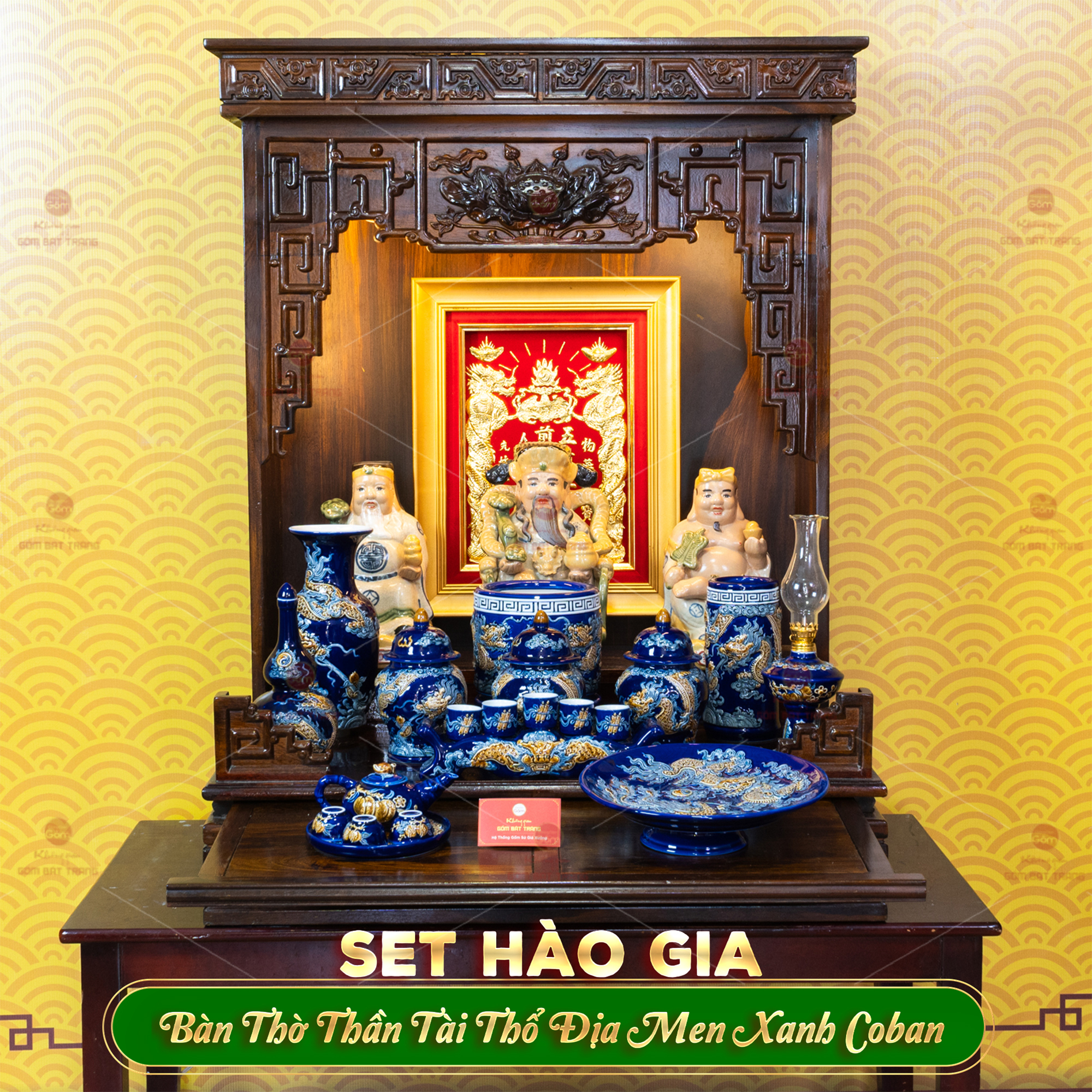 Ý nghĩa Bộ Đồ Thờ Thần Tài Thổ Địa (Hào Gia 14 Món) Men Xanh Coban