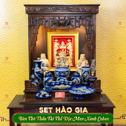 BỘ ĐỒ THỜ THẦN TÀI THỔ ĐỊA (HÀO GIA 14 MÓN) MEN XANH COBAN