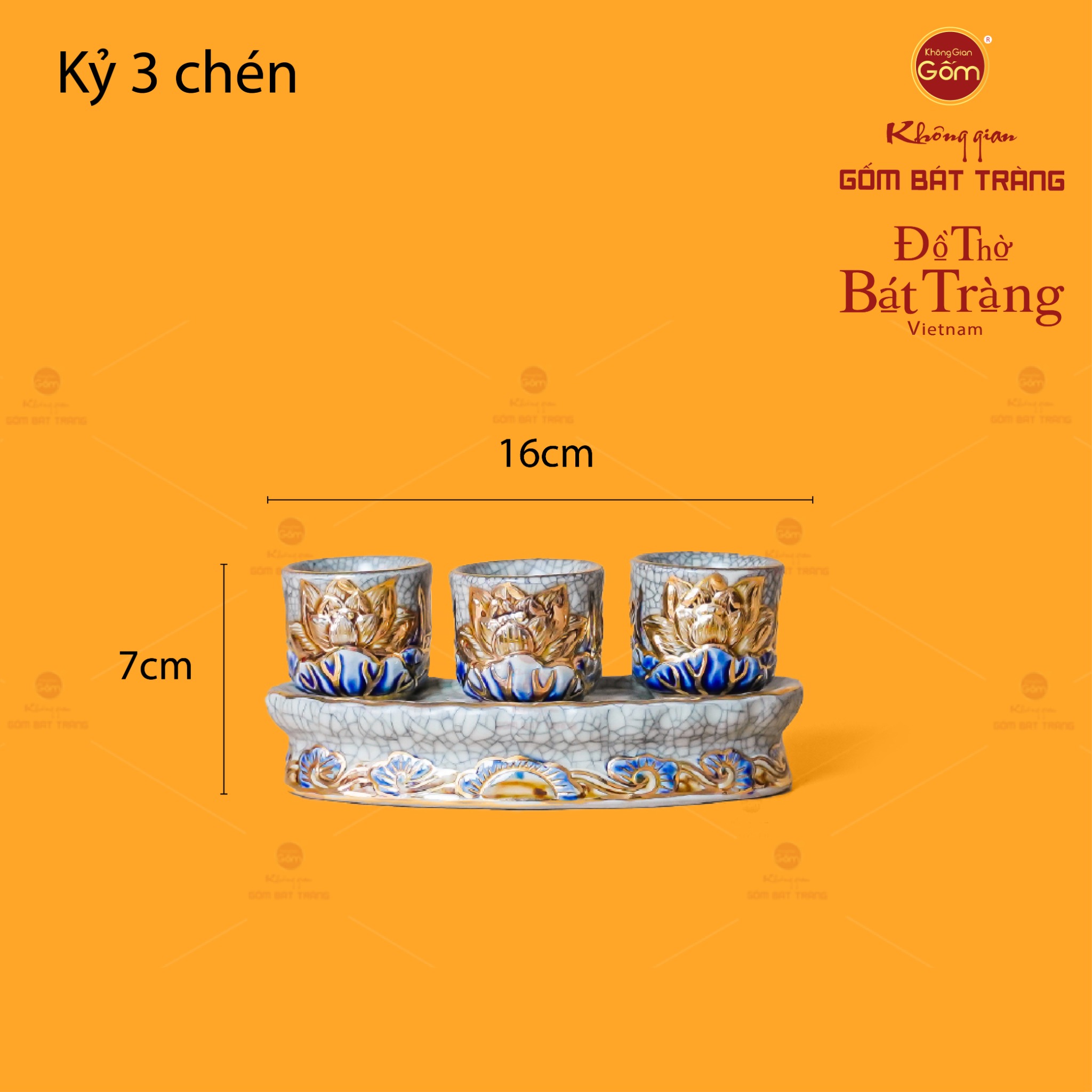 Bộ Kỷ Ngai 3 Chén Thờ Men Rạn Vẽ Vàng là một tác phẩm tiêu biểu, hội tụ nét đẹp văn hóa và tinh hoa truyền thống được chế tác bởi Không Gian Gốm Bát Tràng. Đây là một trong những vật phẩm quan trọng, đóng vai trò không thể thiếu trên bàn thờ của các gia đình Việt Nam, góp phần mang lại sự trang nghiêm và đầy đủ cho không gian thờ cúng. Sự kết hợp tinh xảo giữa nghệ thuật men rạn cổ điển và chi tiết vẽ vàng đã làm cho bộ kỷ ngai trở thành biểu tượng của lòng thành kính, đồng thời tôn lên vẻ đẹp thanh lịch và tinh tế, tạo điểm nhấn thiêng liêng cho bàn thờ gia tiên. Sản phẩm này không chỉ làm cho việc thờ cúng trở nên ý nghĩa và trang trọng hơn mà còn góp phần gìn giữ, phát huy giá trị văn hóa tâm linh trong đời sống gia đình Việt.
