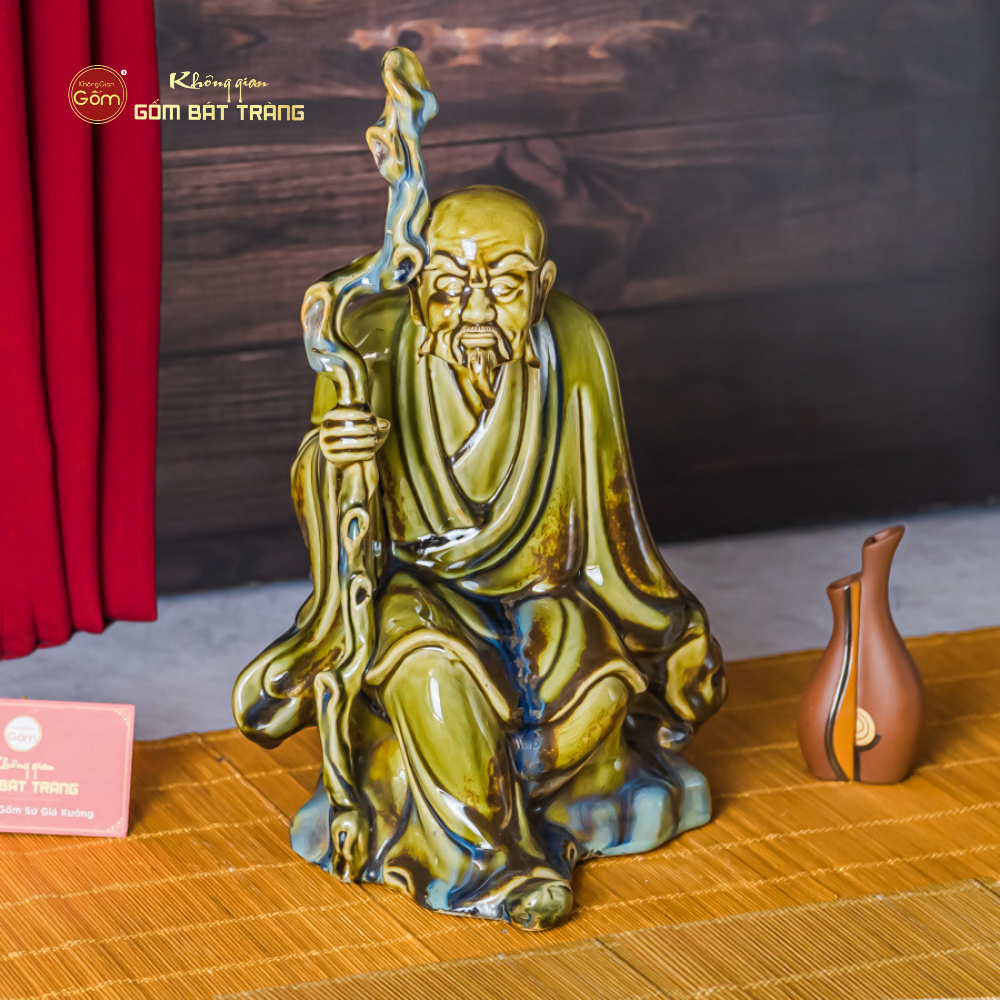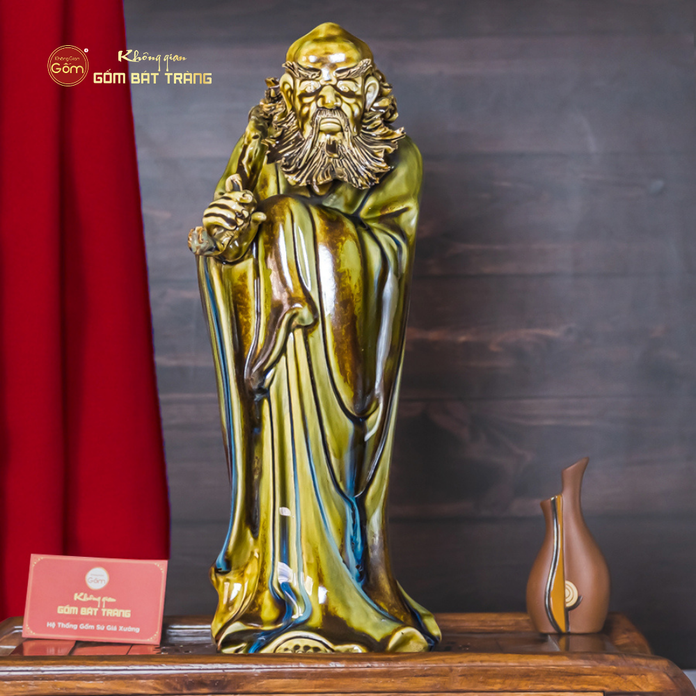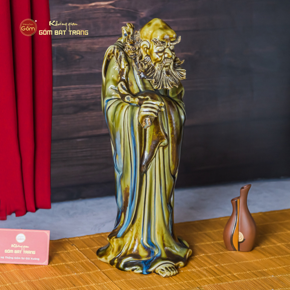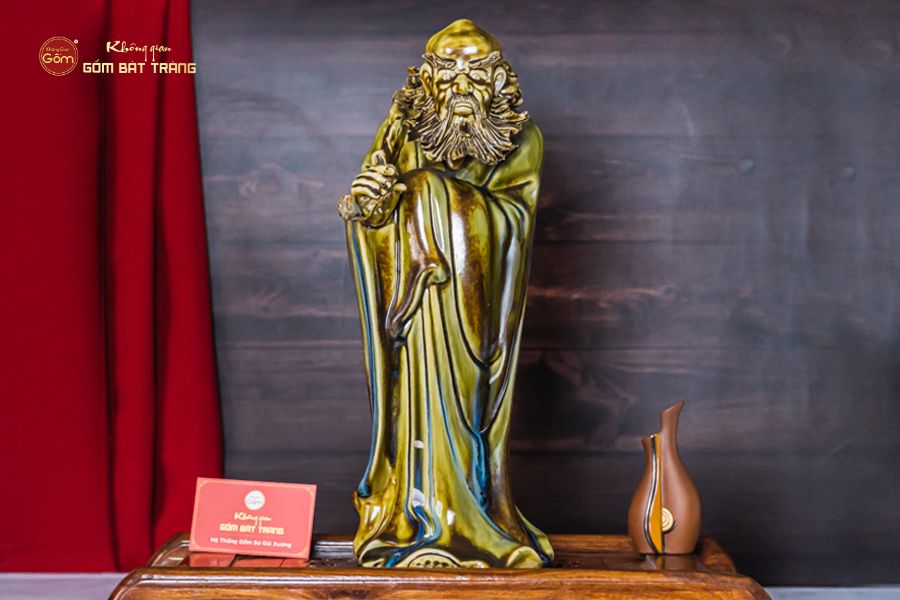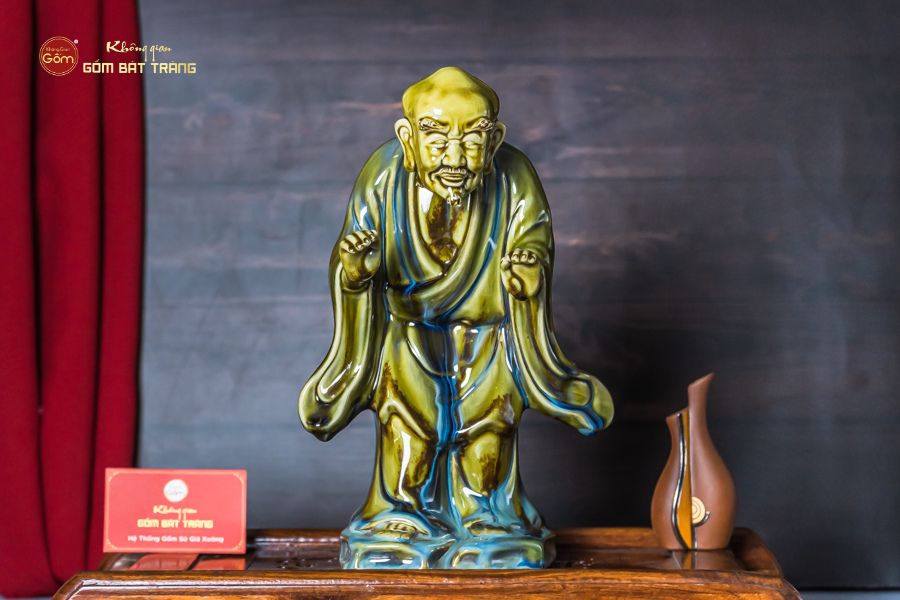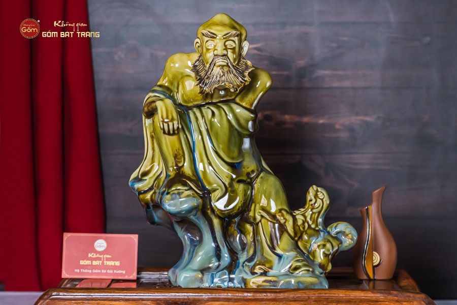 Chất liệu gốm sứ cao cấp: Sản phẩm được làm từ đất sét trắng Bát Tràng tinh tuyển, xử lý kỹ lưỡng và nung ở nhiệt độ cao, giúp tượng có độ cứng chắc vượt trội, hạn chế rạn nứt và bền màu theo thời gian.