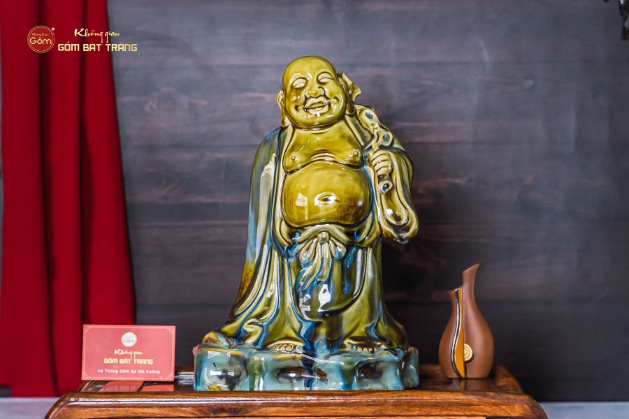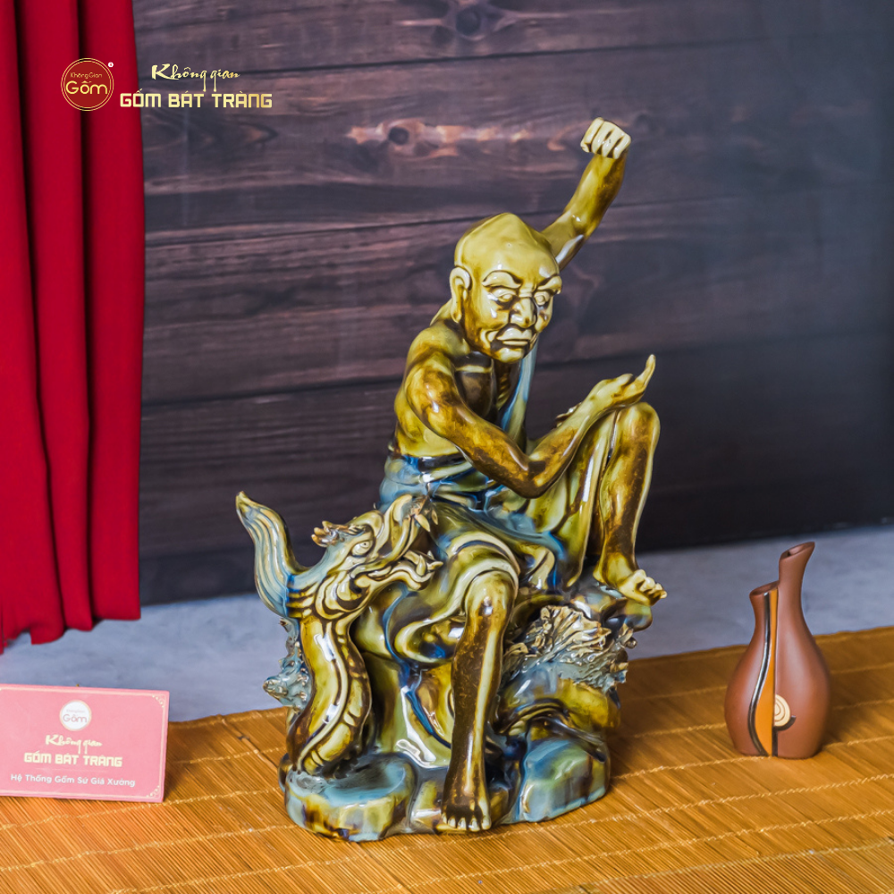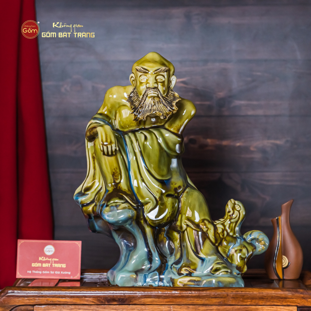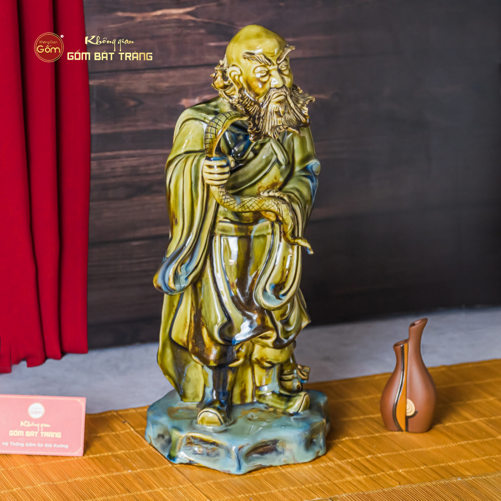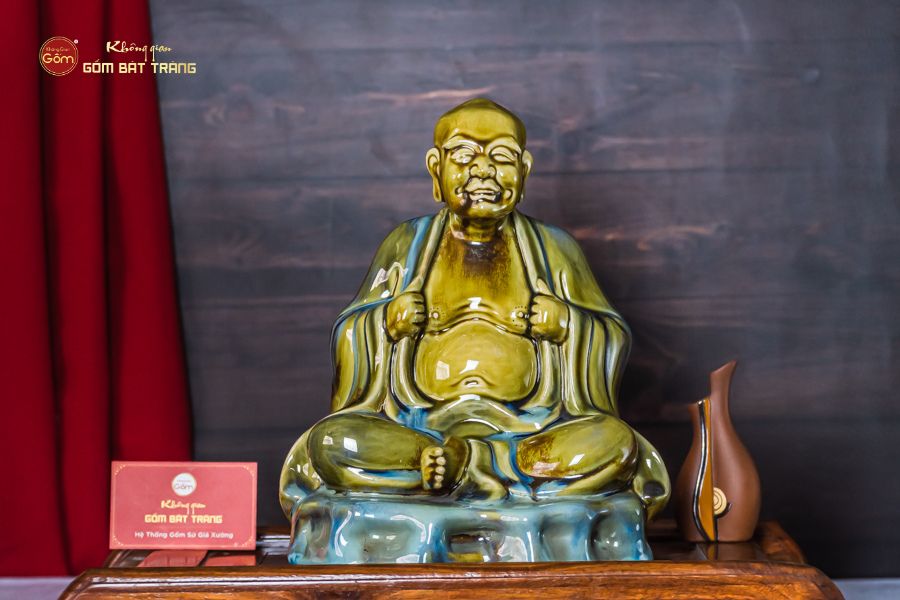 Chất liệu gốm sứ cao cấp: Sản phẩm được làm từ đất sét trắng Bát Tràng tinh tuyển, xử lý kỹ lưỡng và nung ở nhiệt độ cao, giúp tượng có độ cứng chắc vượt trội, hạn chế rạn nứt và bền màu theo thời gian.