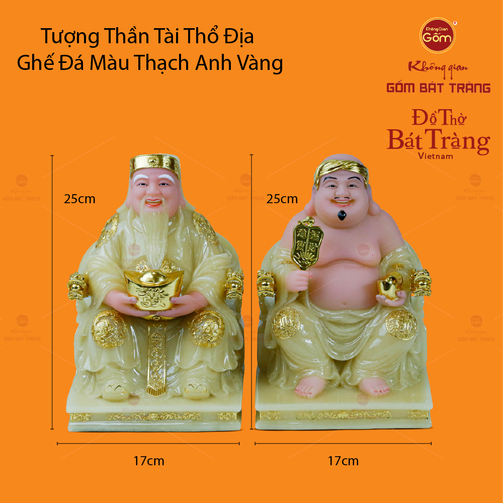 | Tên sản phẩm: | Bộ Tượng Thần Tài Thổ Địa Ghế Rồng Màu Thạch Anh Vàng |