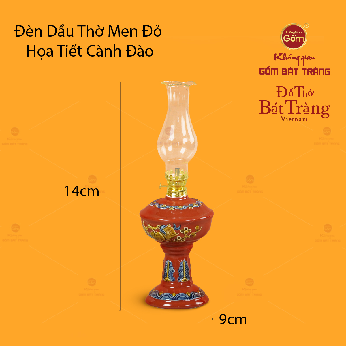 | Tên sản phẩm: | Đèn Dầu Thờ Men Đỏ Họa Tiết Cành Đào |