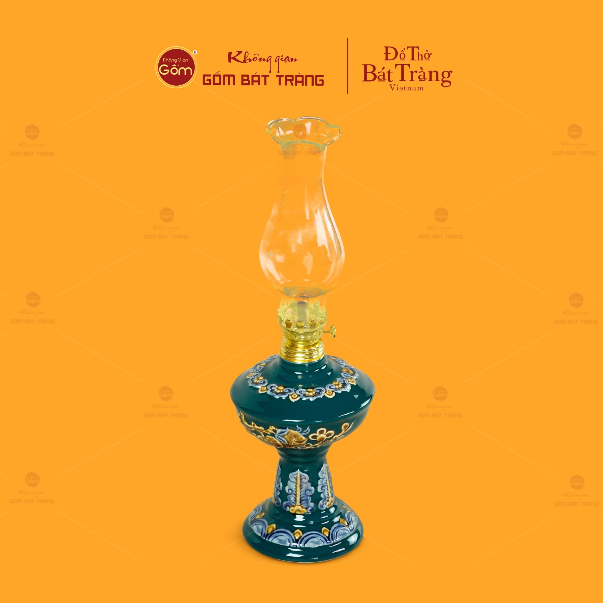 Sản phẩm được chế tác thủ công từ gốm sứ Bát Tràng, trải qua các công đoạn tạo hình, tráng men, vẽ họa tiết và nung ở nhiệt độ cao, giúp xương gốm chắc, bề mặt ổn định và bền màu theo thời gian. Đèn có kết cấu cân đối gồm phần chân đế vững chãi, thân đèn bo tròn mềm mại và bầu chứa dầu phía trên, kết hợp cùng ống thủy tinh trong suốt, thuận tiện cho việc sử dụng trong các nghi lễ thờ cúng hằng ngày và dịp lễ tiết.