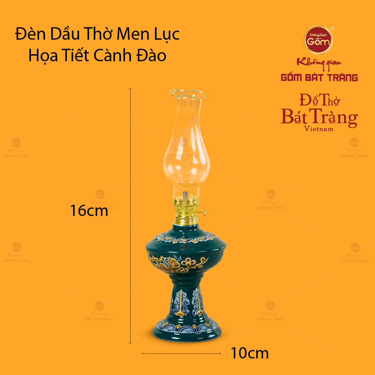 | Tên sản phẩm: | Đèn Dầu Thờ Men Lục Họa Tiết Cành Đào |