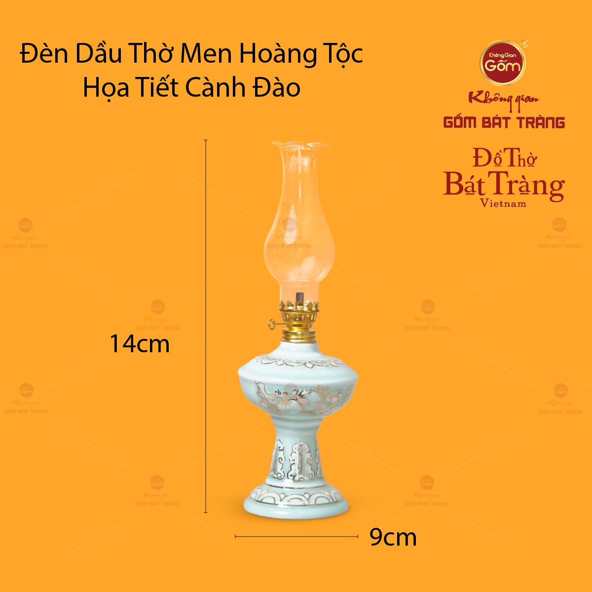 ĐÈN DẦU THỜ MEN NGỌC HOÀNG TỘC CÀNH ĐÀO VẼ VÀNG