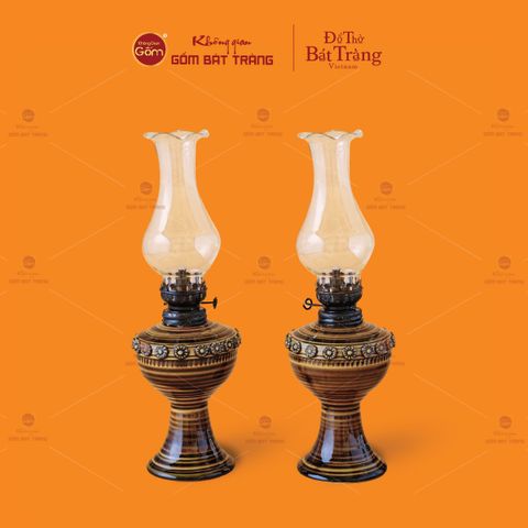 Điểm nhấn tạo nên sự độc đáo và khác biệt của đèn dầu thờ này chính là phần bầu đèn với họa tiết thổ cẩm kết hợp hoa văn đắp nổi. Các đường nét hoa văn đắp nổi mang lại cảm giác sống động, chân thực, tạo chiều sâu và sự tinh xảo cho sản phẩm. Lớp men màu sắc đặc trưng của thổ cẩm không chỉ tôn lên vẻ đẹp của hoa văn mà còn mang lại cảm giác cổ kính, trang nghiêm cho không gian thờ cúng. Phần chân đèn được thiết kế vững chãi, tạo sự cân đối và hài hòa cho tổng thể sản phẩm.